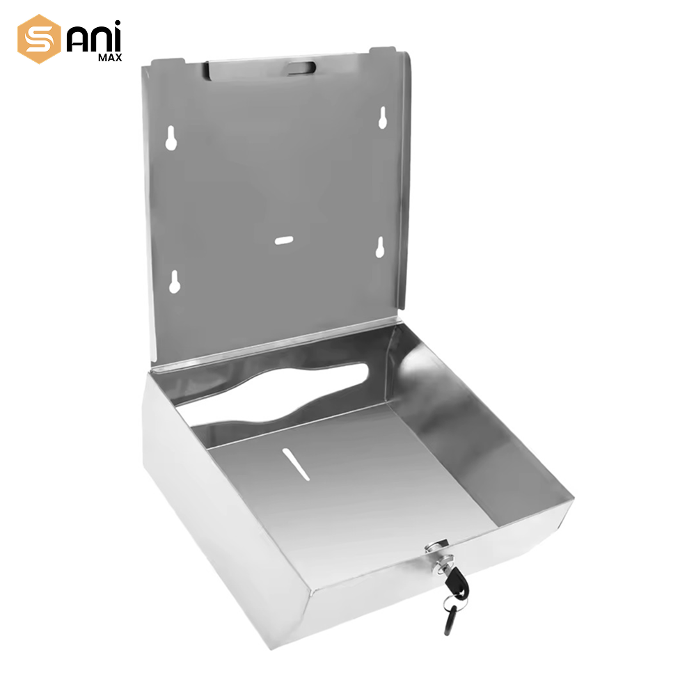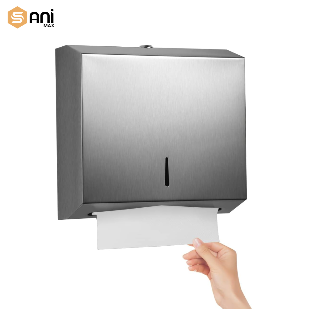 -The Heavy Duty Stainless Steel Wall Mounted Tissue Paper Dispenser by Sanimax.pk combines durability, functionality, and modern style, making it the perfect choice for both home and commercial restrooms.